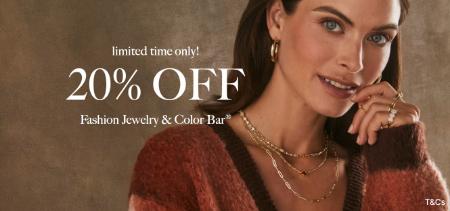 Hurry in and take 20% off on fashion jewelry & Color Bar in store for a limited time.