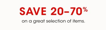 Limited time only! Shop in store and save 20-70% on a great selection of items.
