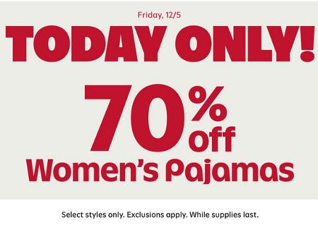 Today only! Shop in store and get 70% off women's pajamas.