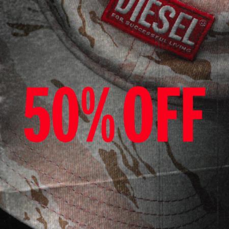 Diesel’s promotion is valid now at Diesel stores in the United States. The discount cannot be combined with any other offers. The promotion applies only to selected items, and additional exclusions may apply. Diesel Outlets may offer a different promotion and may have separate terms and conditions.