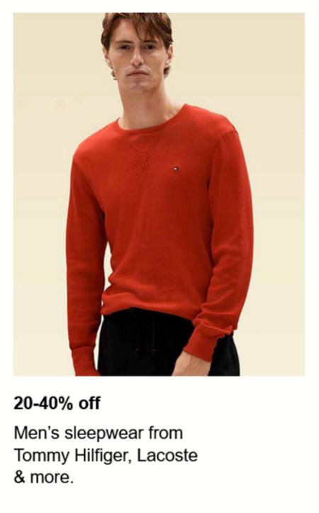 Get it now! Shop in store and get 20-40% off men's sleepwear from Tommy Hilfiger, Lacoste & more.