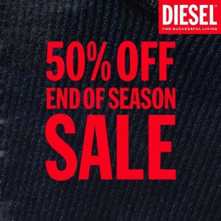 Diesel’s promotion is valid now at Diesel stores in the United States. The discount cannot be combined with any other offers. The promotion applies only to selected items, and additional exclusions may apply. Diesel Outlets may offer a different promotion and may have separate terms and conditions.