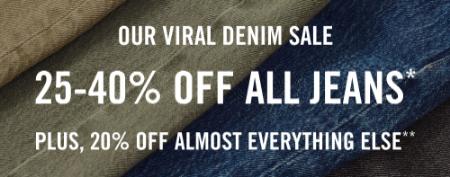 Don't miss out! Shop in store and save 25-40% off on all jeans, plus 20% off almost everything else.