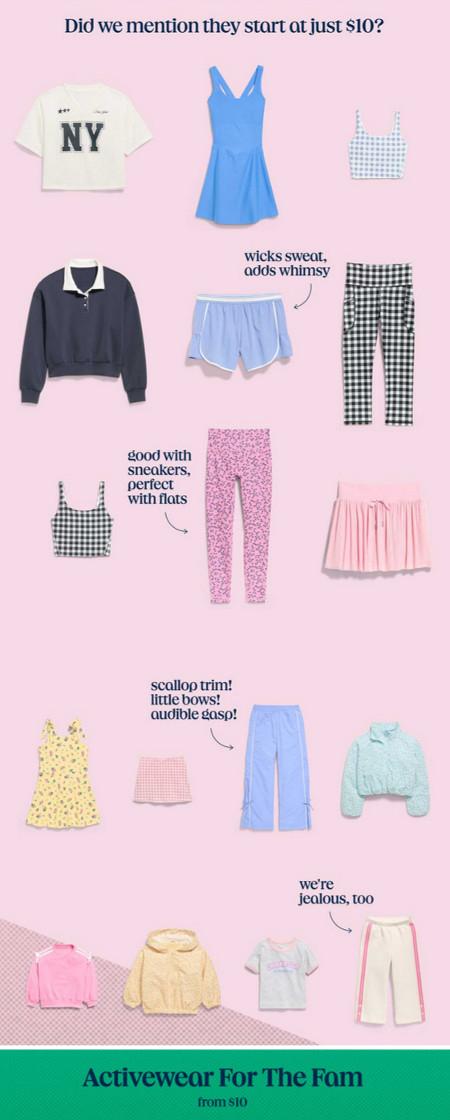 Get it now! Shop in store and get activewear for the family starting at $10.
