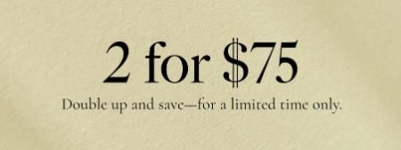 Hurry in and enjoy 2 for $75 select items in store for a limited time.